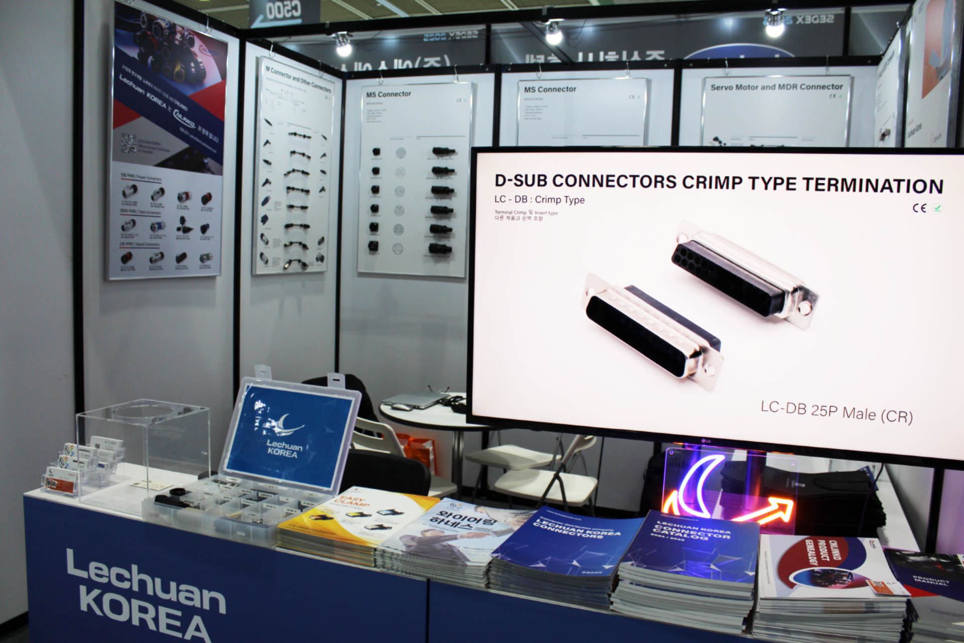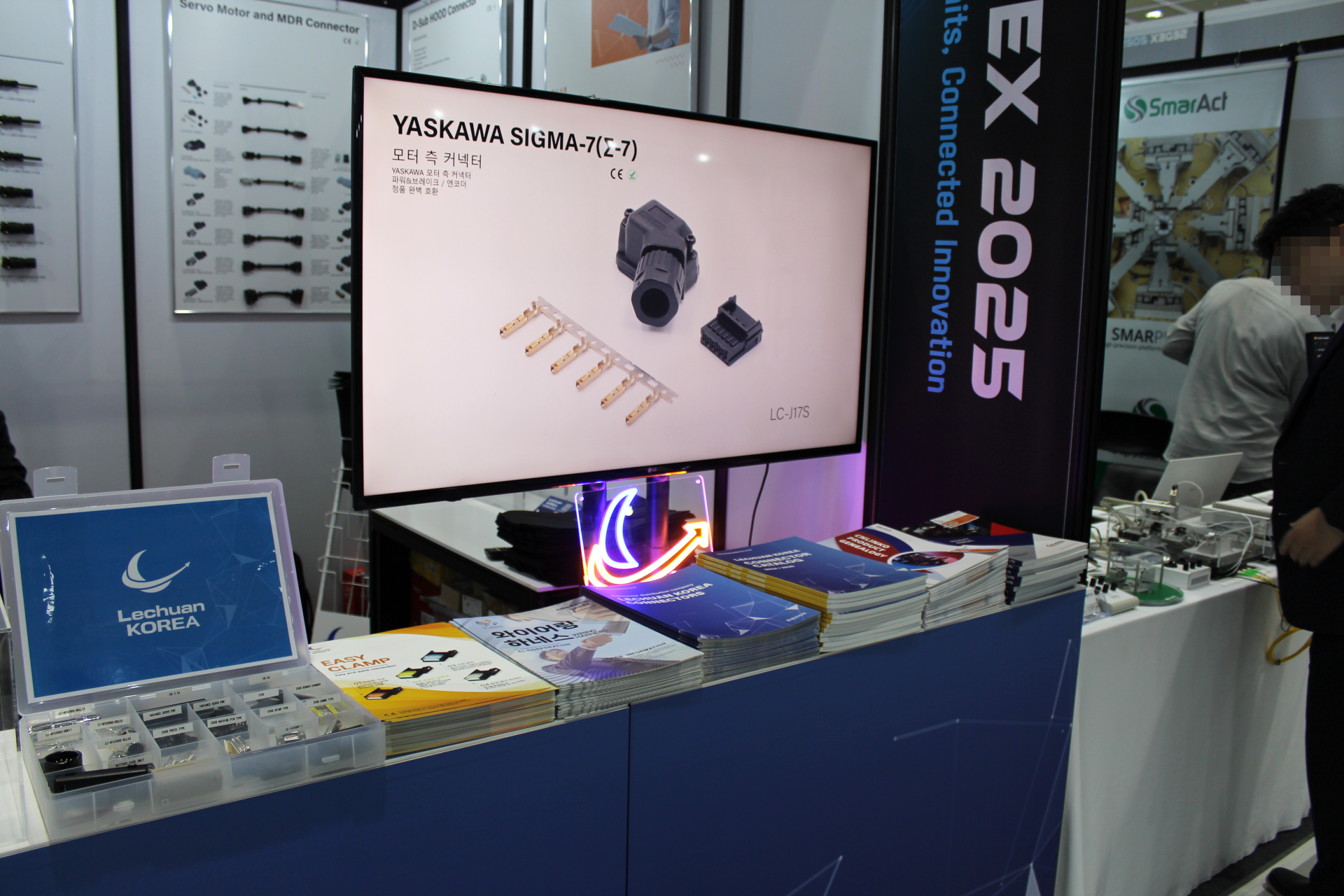 루첸코리아는 이번 전시회에서 산업용 커넥터와 와이어링 하네스(Wiring Harness), 그리고 CNLINKO 방수 커넥터 시리즈 등 반도체 장비 및 자동화 설비에 최적화된 다양한 연결 솔루션을 선보였습니다. 특히, 실제 장비 환경에서 활용 가능한 커넥터의 제안으로 이번 전시를 구성해 많은 업계 관계자들이 관심을 보였습니다.